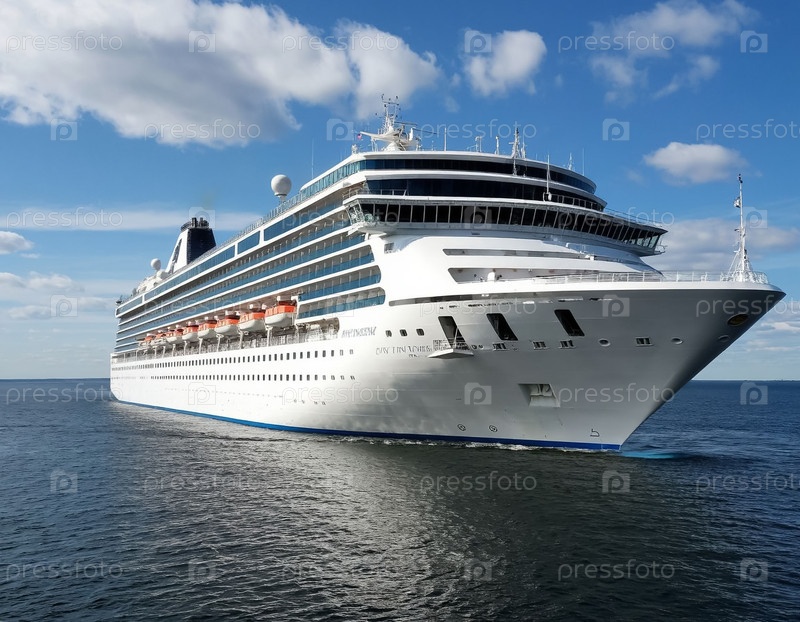 Снежно-белый круизный корабль на море. Морское путешествие