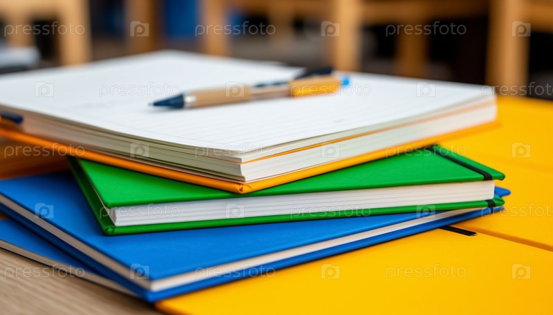 Ноутбуки и учебники на столе в классе. генерация ИИ