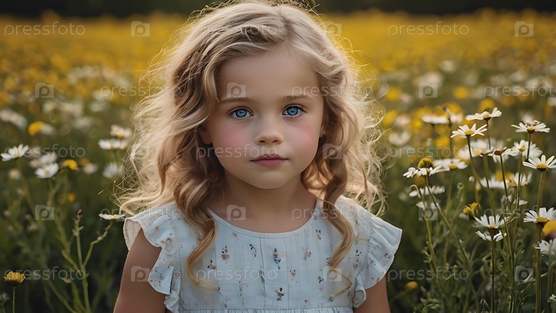 Всероссийский День семьи, любви и верности Красивая маленькая кудрявая девочка на фоне поля ромашки День святого Валентина Петра и Февронии