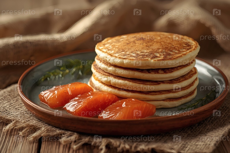 Вкусные блины с соленой красной рыбой.Концепция российского праздника Масленицы