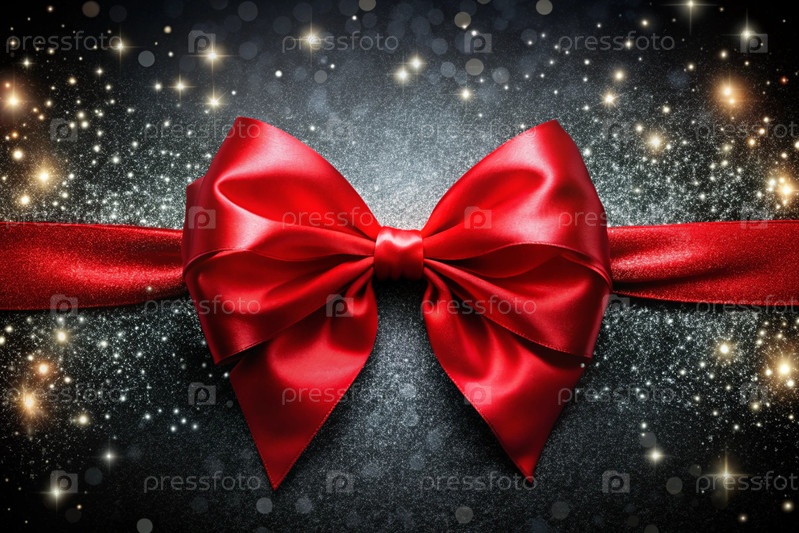 Элегантный лук из атласной красной ленты на блестящем черном фоне