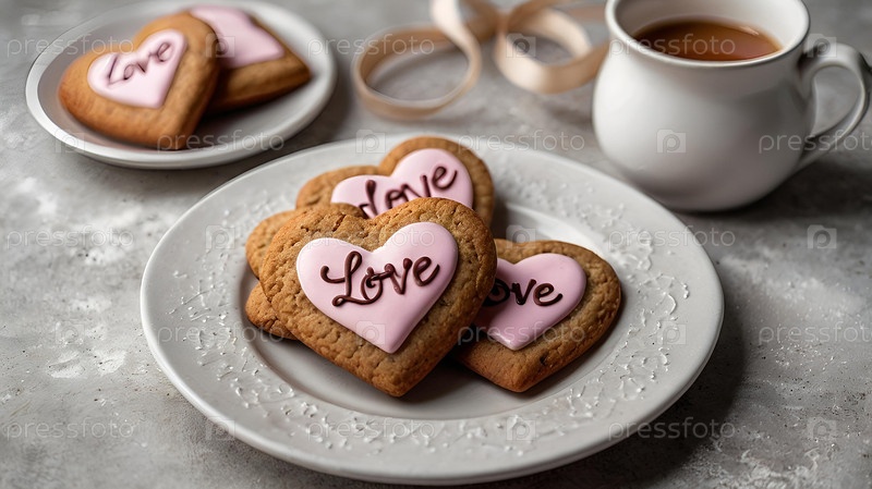 Домашние имбирные печенье в форме сердца с красным сахаром вкусное сердце бисквита из имбиря на сером бетонном фоне свежевыпеченный пряник для дня святого Валентина