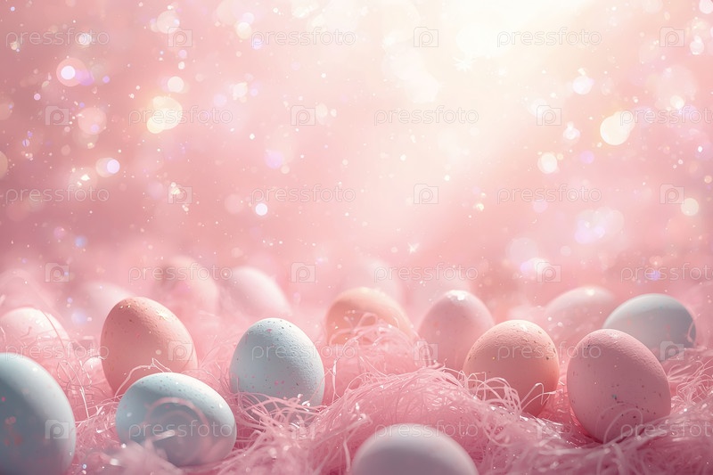 Концепция яркого и радостного Пасхального праздника в 2026 году.Нежные пасхальные яйца на фоне пастельной акварели