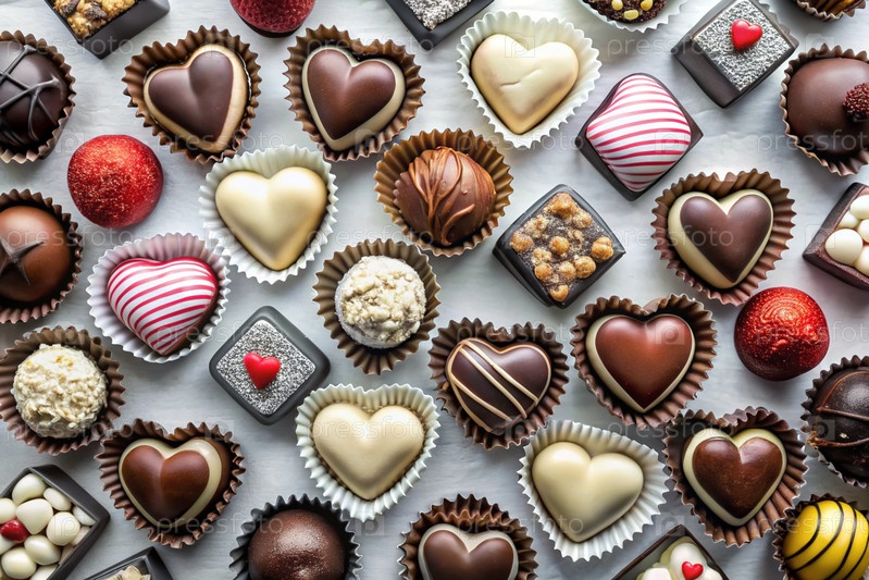 Ассортимент изысканного шоколада, белого, темного и молочного. История сладостей. Концепция Дня святого Валентина