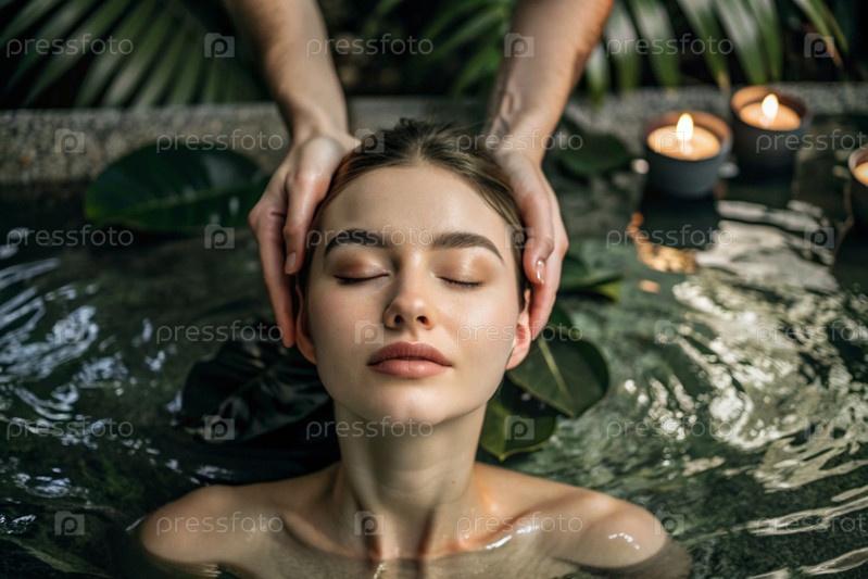 Близкий вид сверху молодая красивая женщина на спа-процедурах в баре концепция здорового образа жизни, расслабление косметические процедуры эго