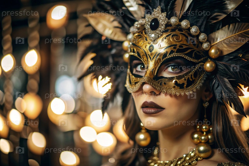 Карнавал Венеции.Закрытие женщины в украшенной карнавальной маске.Яркие цвета передают атмосферу празднования и роскоши