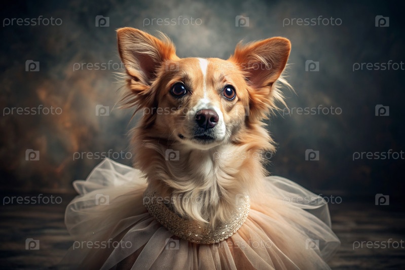 Красивый портрет милой имбирной собаки, одетой в розовое туту