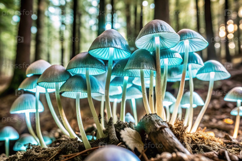 Ядовитые грибы. Жабы. Галлюциногенные грибы. Светящиеся грибы. Изображение для иллюстрации тем, связанных с природой, фантазией, сказками и магией