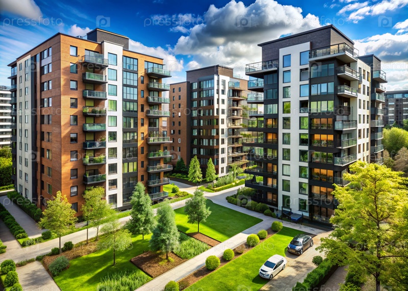 Современные многоэтажные жилые дома. Строительство новых жилых кварталов. Новые здания. Строительный бизнес. Ипотека для нового экологически чистого жилья
