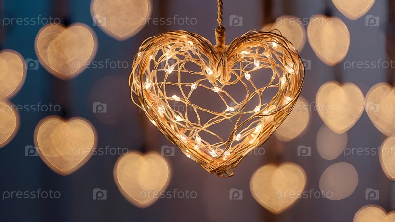 Концепция Дня святого Валентина, баннер с гирляндами в форме сердец и волшебными огнями для праздника, наполненного любовью