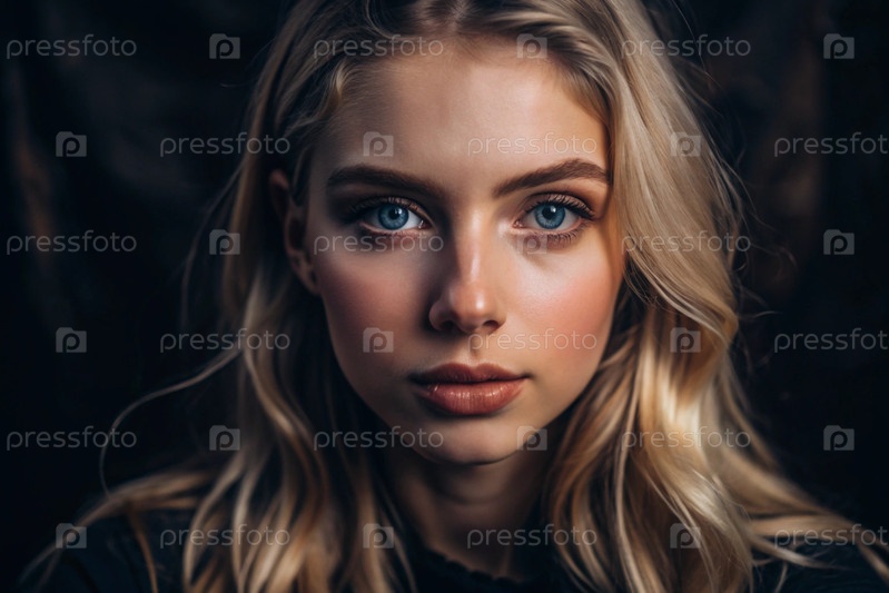 Глубокий эмоциональный портрет. Лицо молодой блондинки без макияжа, с выразительными глазами, кудрявыми волосами. Естественная женская красота