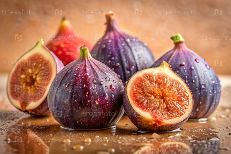 Есть много инжиров с деликатной фиолетовой кожей и в разрезе. рамка, показывающая естественную текстуру и цвет. закрытие фруктов
