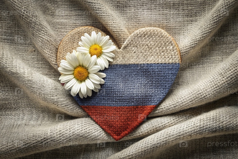 Всероссийский День семьи, любви, верности. Дези, сердце, российский флаг и трехцветная лента. День святого Валентина Петра и Февронии