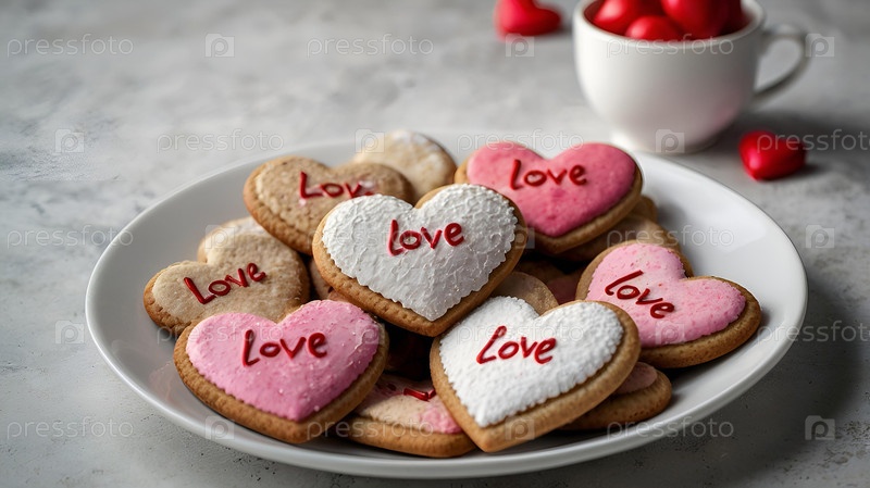 Домашние имбирные печенье в форме сердца с красным сахаром вкусное сердце бисквита из имбиря на сером бетонном фоне свежевыпеченный пряник для дня святого Валентина