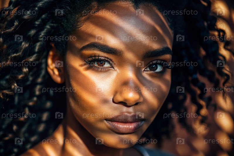 Красивый портрет афроамериканской модели на нейтральном оранжевом фоне с контрастным освещением и тенями