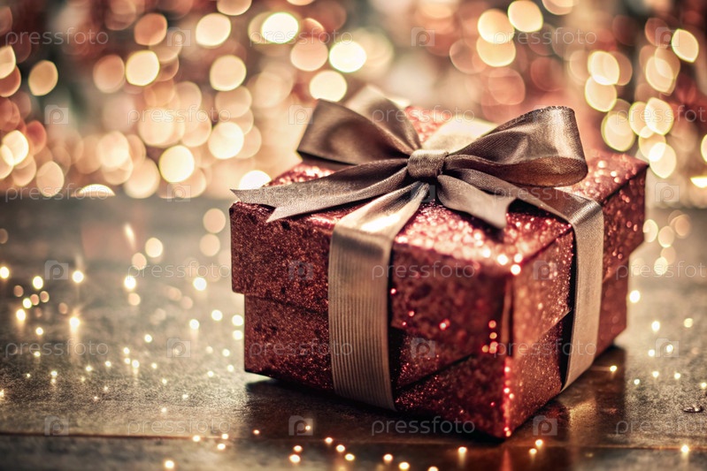 Подарочные красные блестящие коробки среди рождественских огней. уютная концепция для Рождества и зимних каникул в 2025 году. мы готовим подарки для наших близких