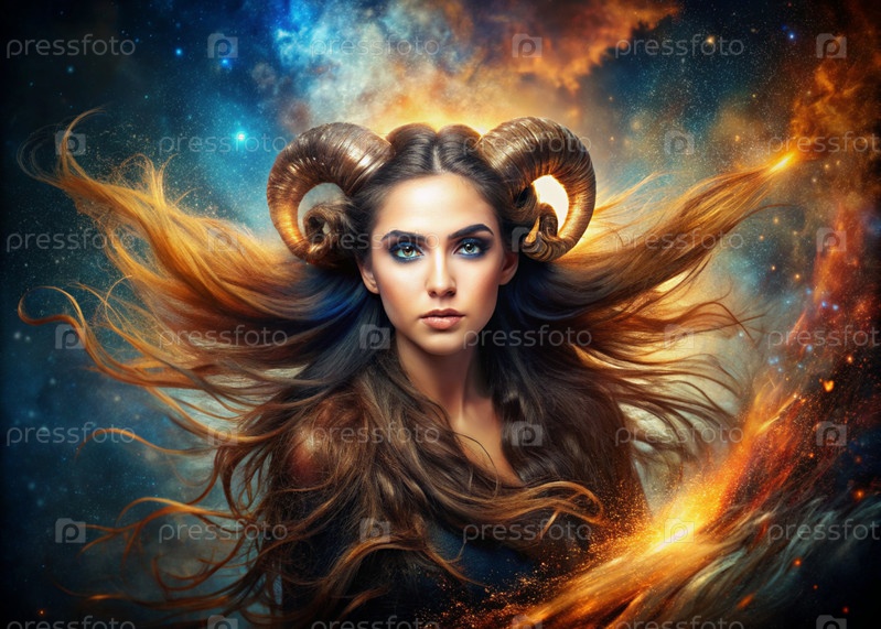 Знаки зодиака. Астрологический прогноз. Предсказания. Красивая девушка в знаке Зодиака Овен. Понятие астрологии и гороскопа. Серия изображений 12 знаков зодиака