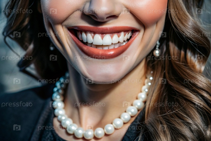 Красивая, очаровательная, белоснежная женская улыбка. Женские зубы до и после отбеливания. Концепция стоматологических клиник