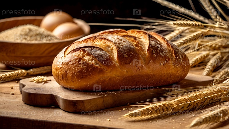 Свежий вкусный хлеб на близком расстоянии. свежевыпеченный квашеный хлеб с золотой корой на деревянной доске. Контекст пекарни со вкусным хлебом