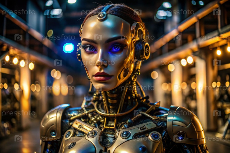 Женский робот-киборг. Интеграция технологий и человеческого взаимодействия. Производство роботов. Искусственный интеллект, Интернет и цифровые технологии будущего