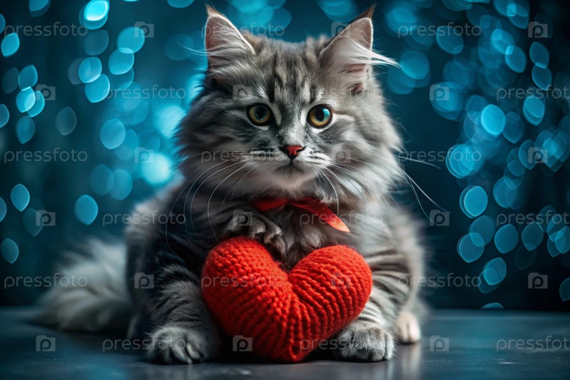 День святого Валентина.Маленький котенок с красными сердцами.Концепция любви к домашним кошкам
