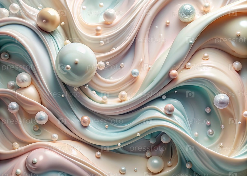 Абстрактный, мечтательный акварельный фон с волнами, полосами, жидкими потоками пастельного розового, синего и жемчуга