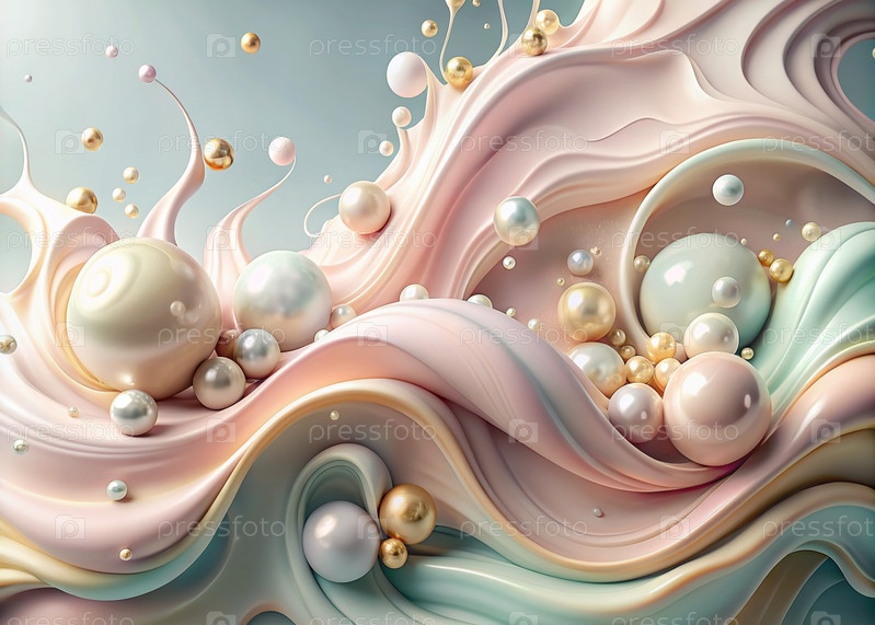 Абстрактный, мечтательный акварельный фон с волнами, полосами, жидкими потоками пастельного розового, синего и жемчуга