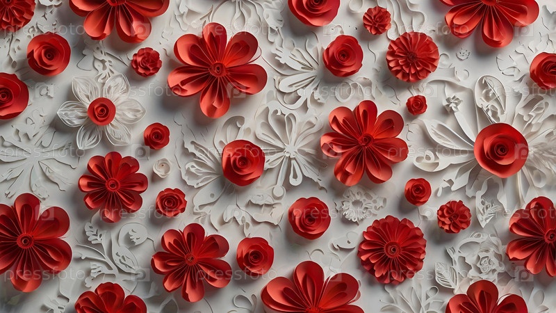 Концепция Дня святого Валентина с красным сердцем, изображающим Любовь. Стильный дизайн бумажных цветов. Копировальное пространство