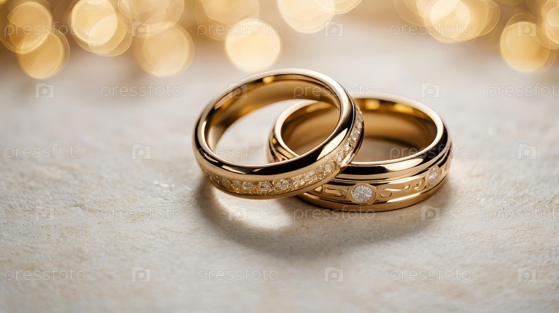 Золотые обручальные кольца на белом фоне со стороной