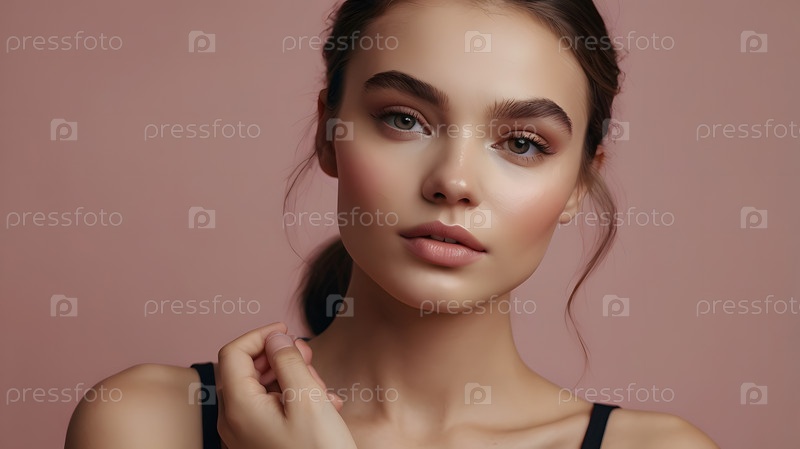 Красивый портрет натуральной девушки на нейтральном розовом фоне