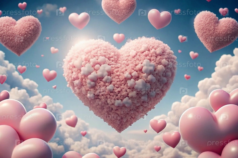 Знак на День святого Валентина. абстрактный фон. красивые нежные розовые сердца в облаках