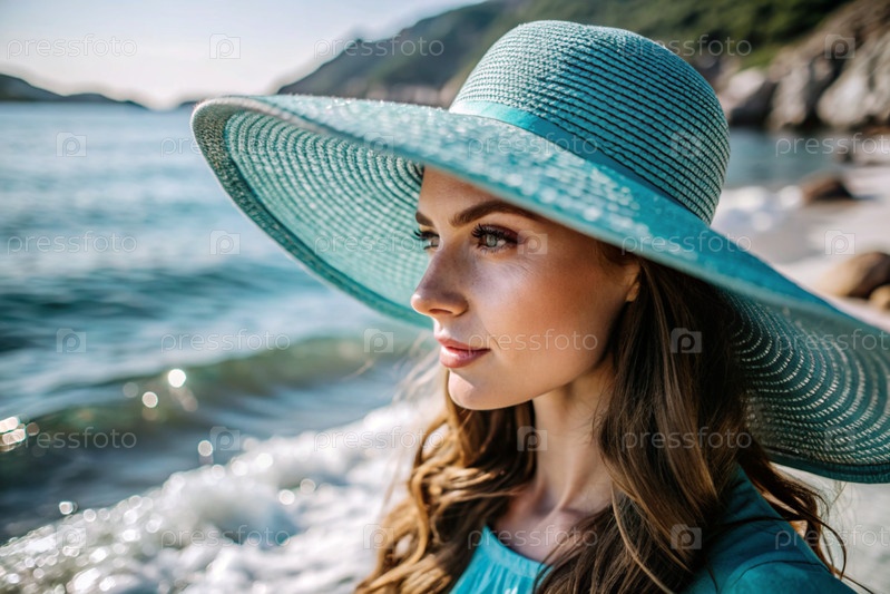 Летние каникулы на пляже, крупный план красивой женщины в соломенной шляпе.Лето.Отдых и отдых, место для копирования