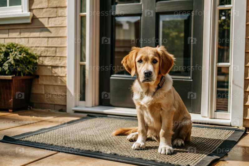 Щенок терпеливо сидит у входной двери, с нетерпением ждет своего хозяина и гуляет вместе с ним