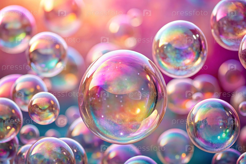 Баннер. Праздничный фон с мерцающими, блестящими, мерцающими прозрачными мыльными пузырями. Красивая сторона