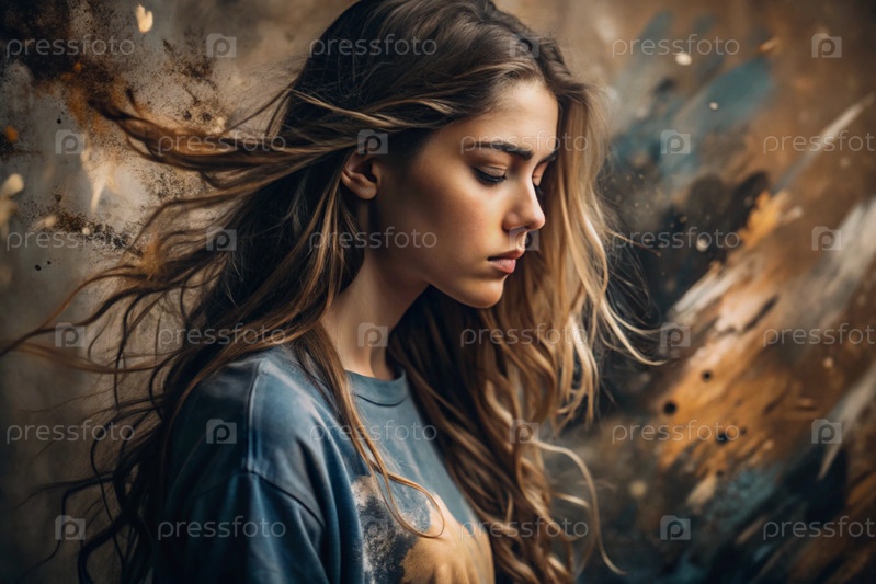 Портрет красивой молодой девушки с продуманным взглядом. волосы развиваются и создают ощущение легкости и естественности