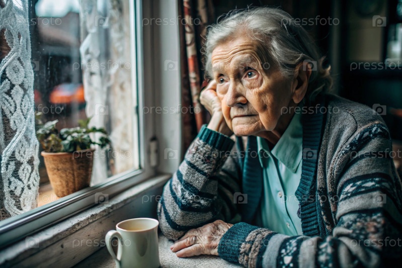 Минимализм.Портрет пожилой женщины, пенсионерки, концепция жизни пожилых людей, здоровье, одиночество и потеря памяти