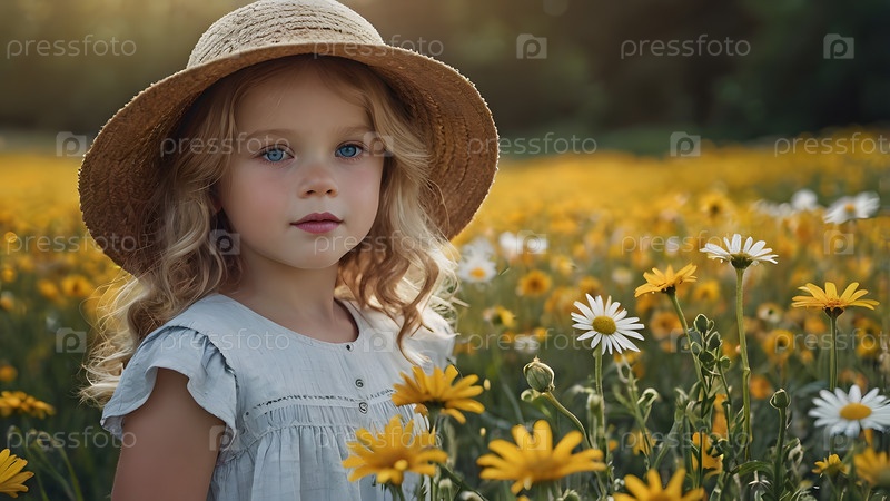 Всероссийский день семьи, любви и верности Красивая маленькая кудрявая девочка в соломенной шляпе на фоне поля ромашки День святого Валентина Петра и Февронии