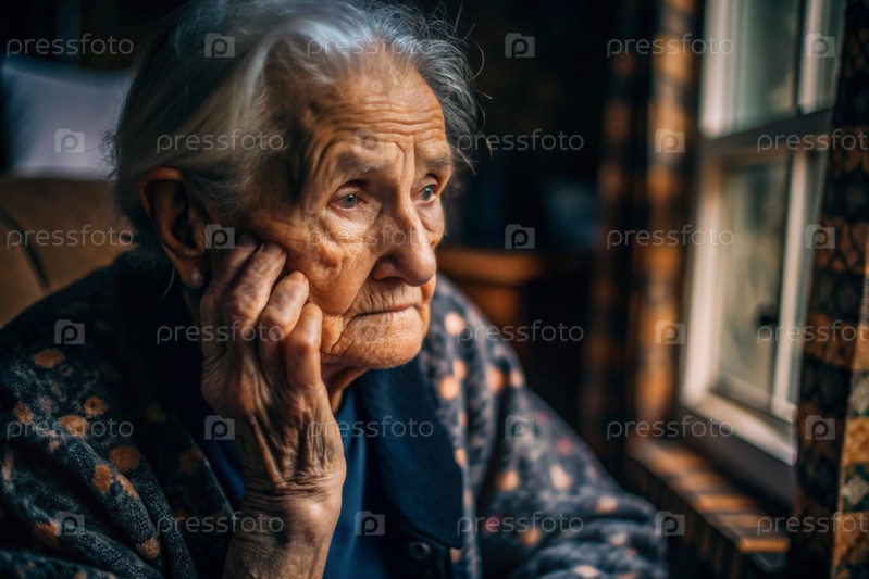 Минимализм.Портрет пожилой женщины, пенсионерки, концепция жизни пожилых людей, здоровье, одиночество и потеря памяти