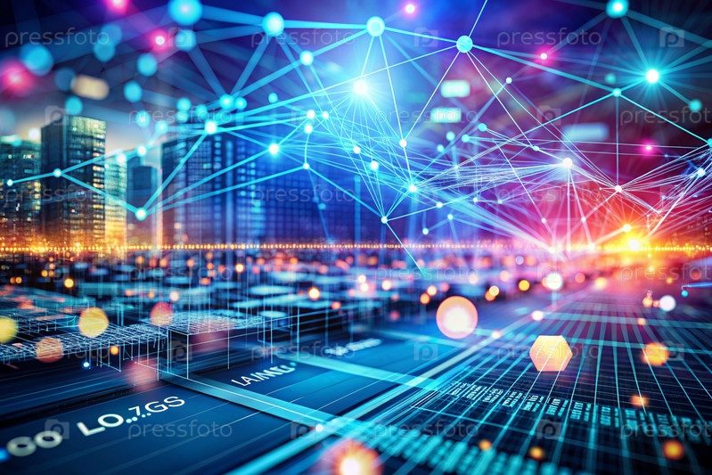 Высокотехнологичный материал. Закрытие линий и проводов цветными огнями, создание абстрактного дизайна. Концепция коммуникации, интернета и будущих технологий