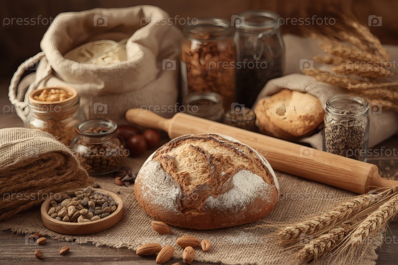 Свежий, вкусный хлеб в ближайшем плане. свежевыпеченный кислый хлеб с золотой корой на деревянном фоне. Контекст пекарни со вкусным хлебом. кондитерские изделия