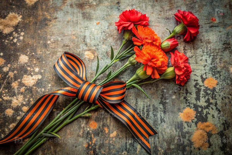 Знамя на 9 мая Красные гвозди и Георгиевская лента на старом фоне Концепция Дня Великой Победы 1941-1945 годов и День защитника Отечества