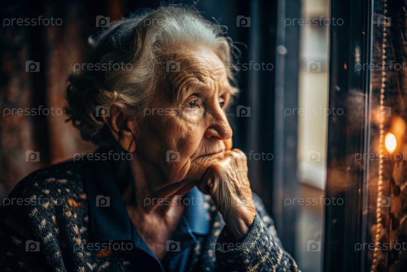 Минимализм.Портрет пожилой женщины, пенсионерки, концепция жизни пожилых людей, здоровье, одиночество и потеря памяти