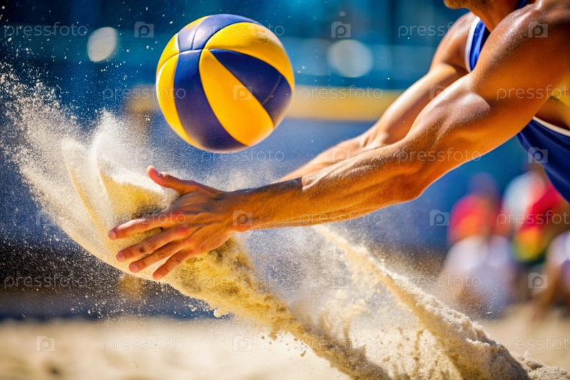 острый момент в игре. волейбол падает на песок. игрок пытается ударить по мячу. концепции летних олимпийских видов спорта