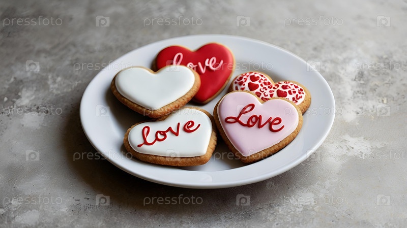 Домашние имбирные печенье в форме сердца с красным сахаром вкусное сердце бисквита из имбиря на сером бетонном фоне свежевыпеченный пряник для дня святого Валентина