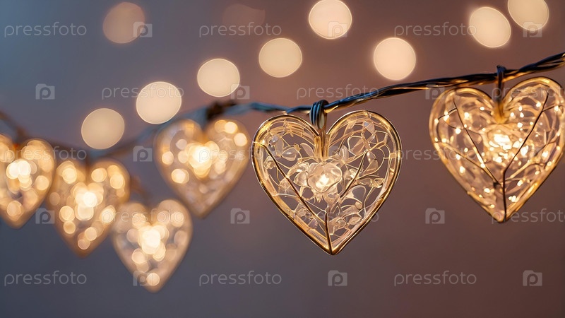 Концепция Дня святого Валентина, баннер с гирляндами в форме сердец и волшебными огнями для праздника, наполненного любовью