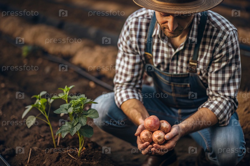 Концепция выращивания продуктов питания. свежие органические картофели в руках фермера. богатый урожай клубней картофеля