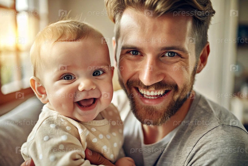 Прекрасный ребенок в объятиях отца. Счастливый ребёнок улыбается на камеру. Ребёнок весело смеётся. Концепция Дня отца