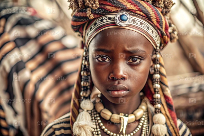 Красивая африканская девушка в традиционном национальном костюме против зебры портрет символизирует традиции и красоту африканского народа