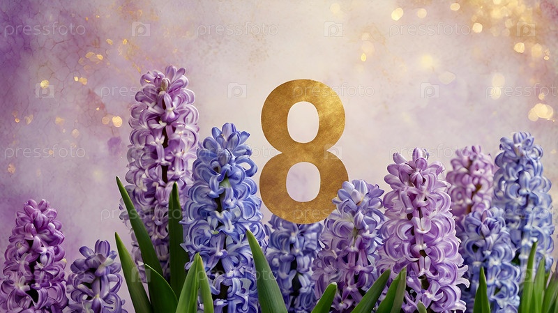 Международный женский день. праздник приходится на 8 марта. баннер, флаер. торжественный, нежный фиолетовый цветочный фон номер 8