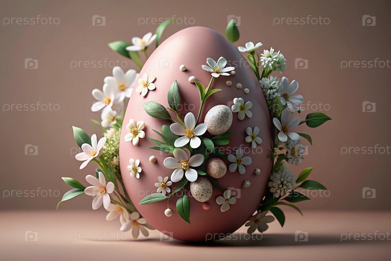 Концепция яркого пасхального праздника минималистична - розовое пасхальное яйцо с нежными белыми вишневыми цветами на тонком розовом фоне